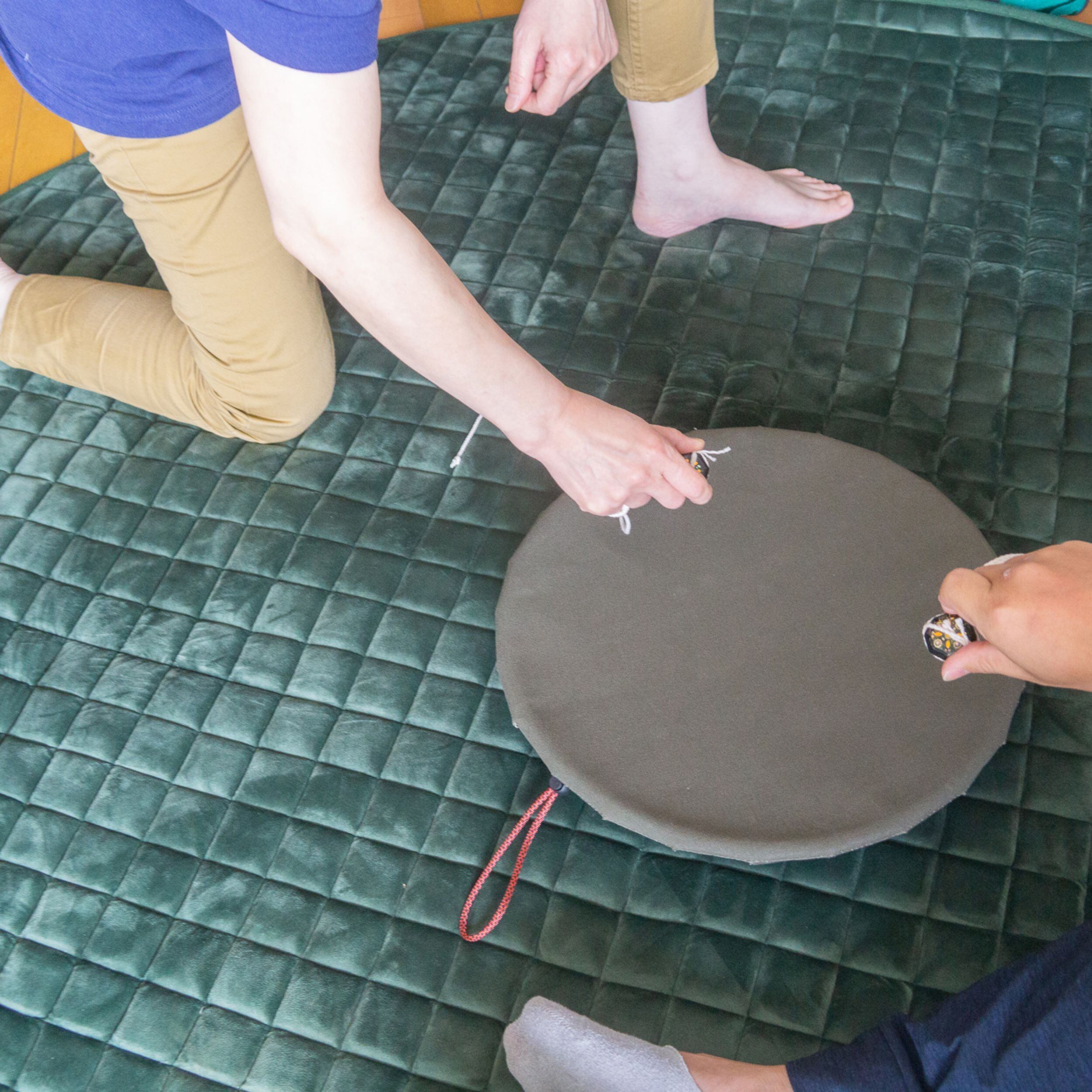 家の中でベーゴマ遊びは、弾いた先に家電や家具に衝突したりと何かと危険。しかし、うすとこくんなら座りながらベーゴマが楽しめるので、敷物さえ敷けば弾けてもゆかを傷つけず、遠くへベーゴマが飛んでいく心配もありません。